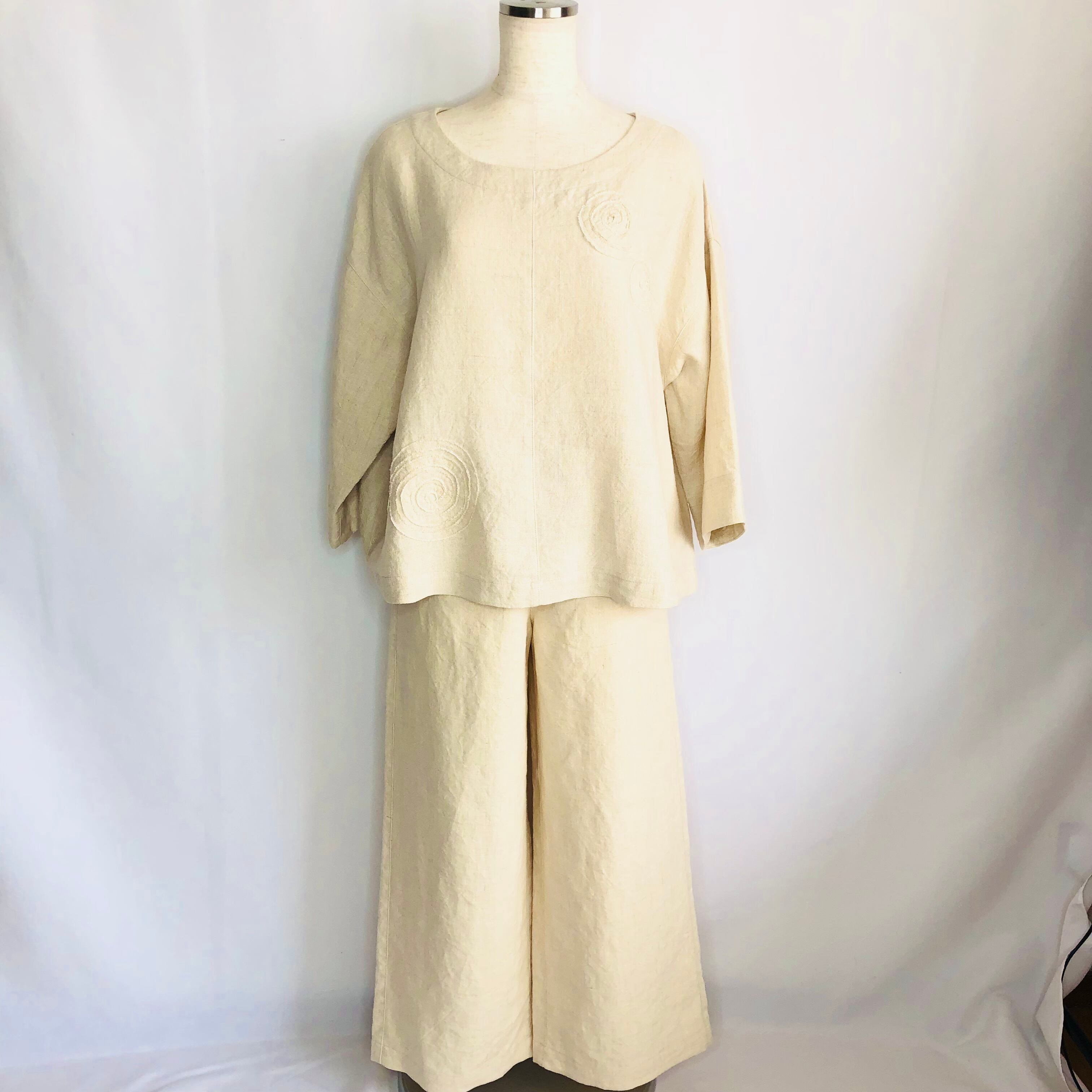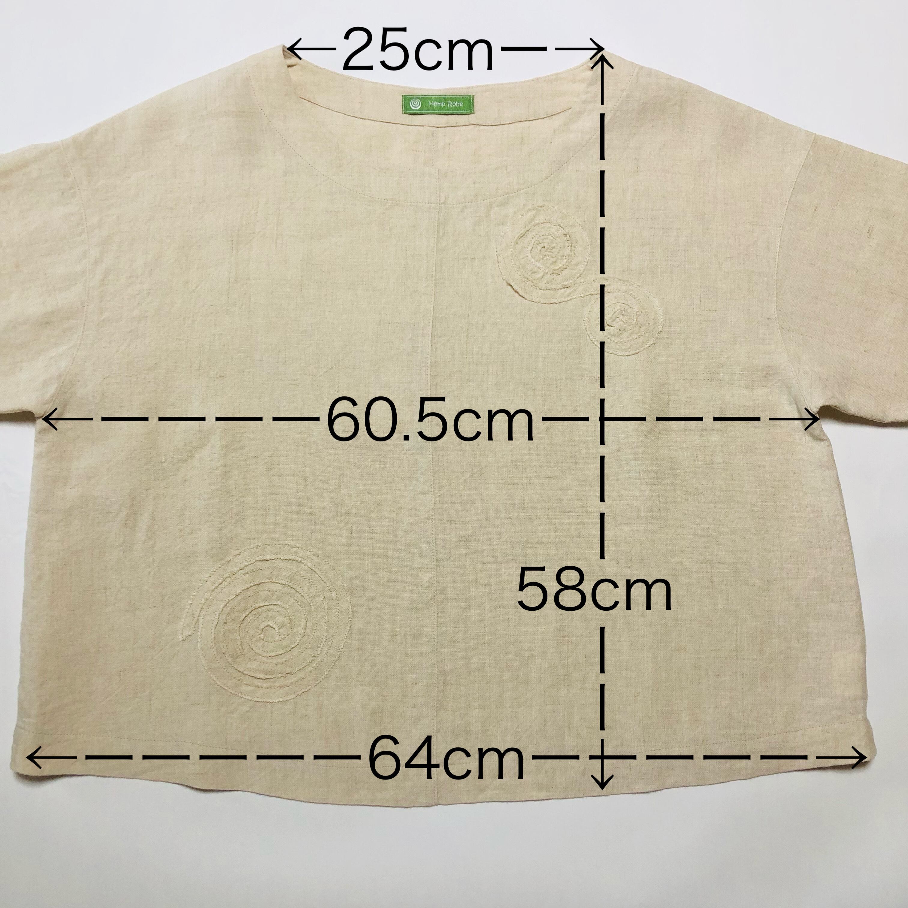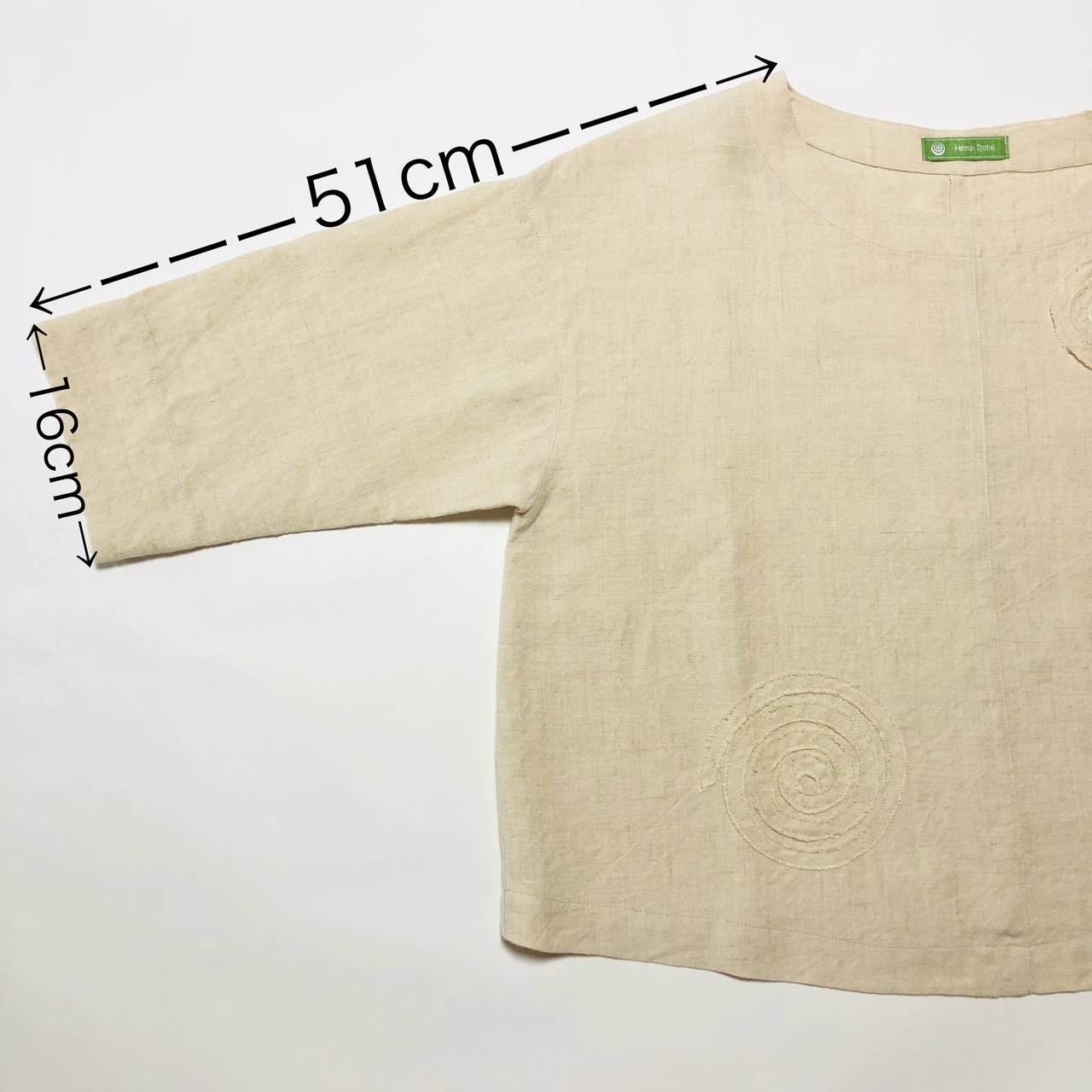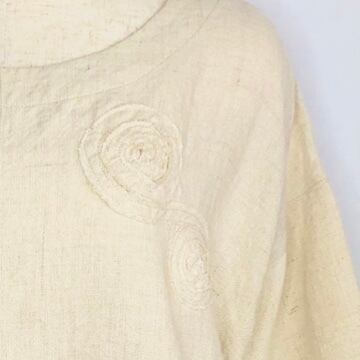 Hemp Robe渦巻きアップリケのプルオーバーブラウス(ヘンプ100%)